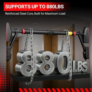 - 【400kg Ultra-High Weight Capacity】Constructed with high-strength steel and reinforced inner pipe walls, this pull-up bar supports up to 400kg (approximately 880lbs), offering a 200% increase in load-bearing capacity compared to standard single-bar models. It can handle high-intensity workouts from multiple users and will not deform with long-term use.