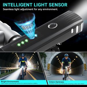 - 💡 Four Lighting Modes – Features Light-Sensing Mode → High Beam → Low Beam → Flashing, for enhanced visibility in both daytime and nighttime riding. Suitable for city commuting, mountain trails, and various cycling environments.