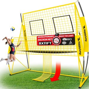 - SUPERIOR DURABILITY FOR MAXIMUM PERFORMANCE – Our volleyball training net system with durable 45ply HPDE polyester net, providing unparalleled strength and long-lasting. Thickened 1.2mm Anti-Rust coated powder steel providing reliable training tool that lasts (others 0.8mm). 30 imported bungee cords ensure even tension to deliver tournament-level rebound accuracy, making our volleyball practice net equipment is the perfect training partner for all session